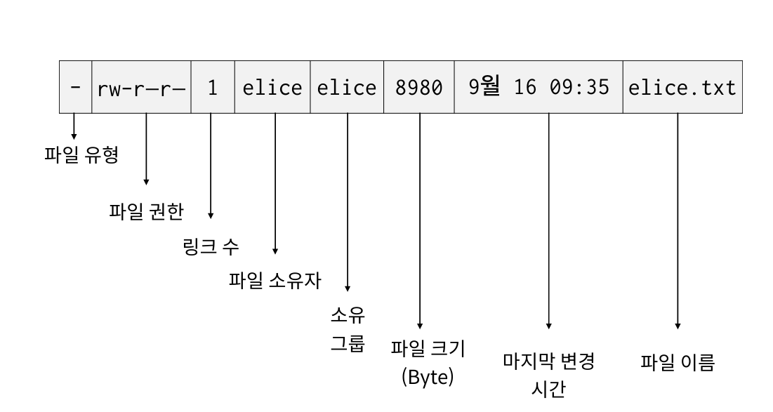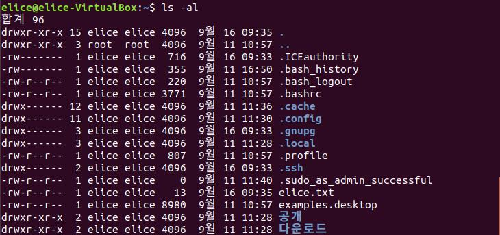 ls -al 명령어를 통해 파일 속성을 확인 해 보면,