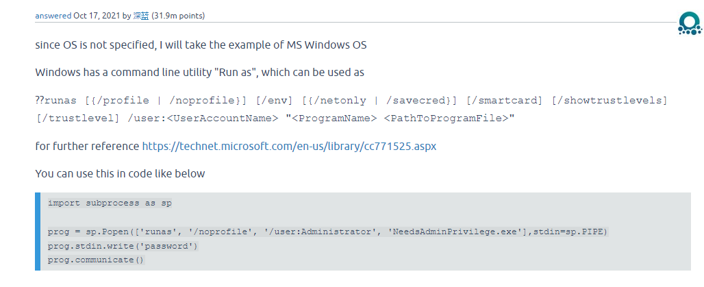 파이썬 내에서 runAs가 막힌다면, 파이썬 밖에서 하면 되지 않을까 했던 것이다.